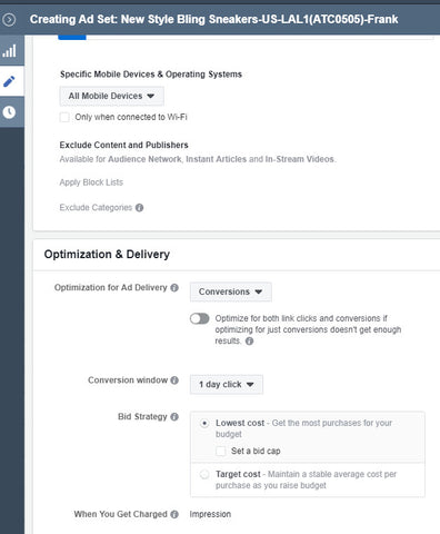 如果当你不知道或者不确定你以什么目标优化该广告组比较好的时候,你可以建立两个不同的优化目标观察。